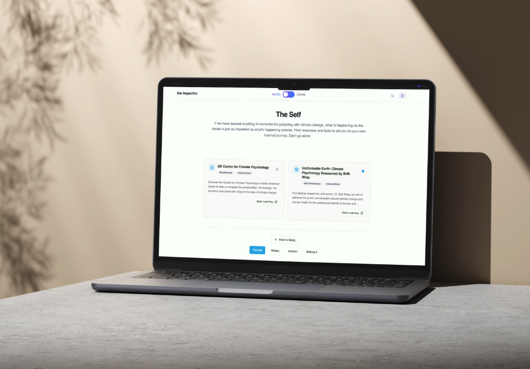we spent a lot of time trying to intentionally incorporate AI into the platform. use our closed-loop AI assistant to analyze over 40 leading climate resources, tools, and books we’ve hand selected into our knowledge library. interact with the assistant from both a being and doing mindset - it’s quite cool.